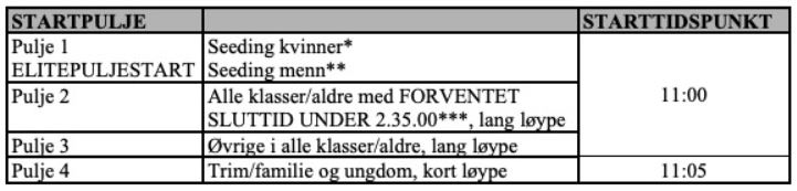 Vi har derfor pga. sikkerheten til løperen bestemt flg. nye start tider :